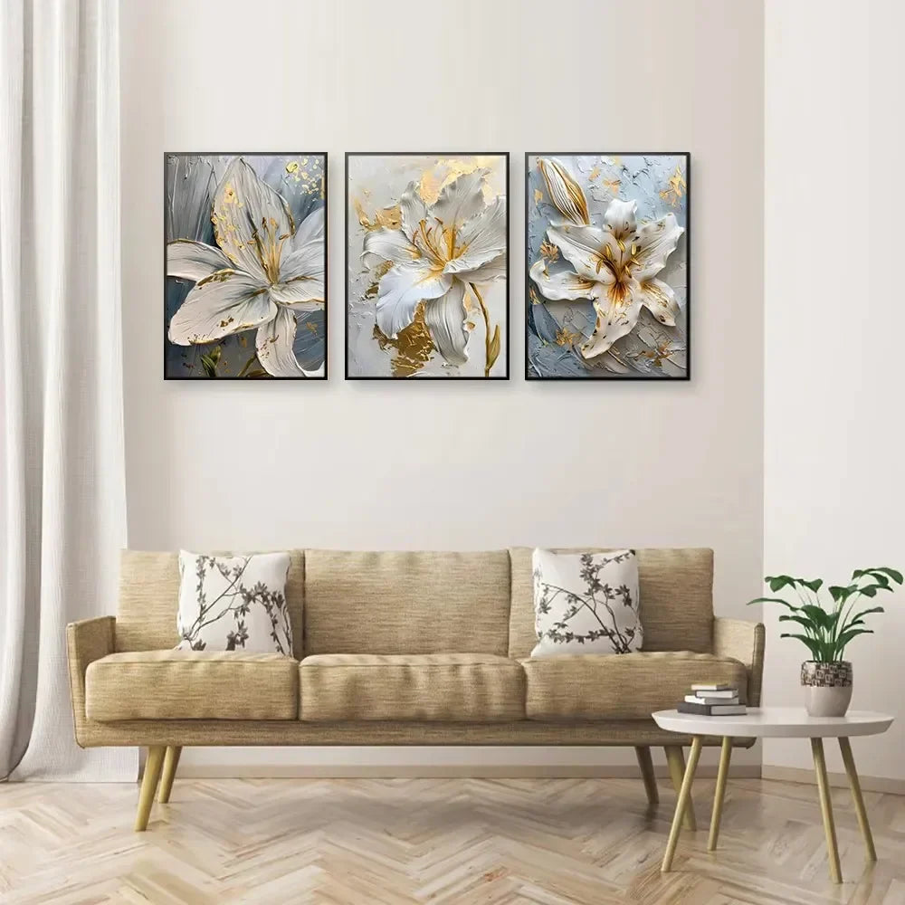 3D Gold and White Flower Canvas
